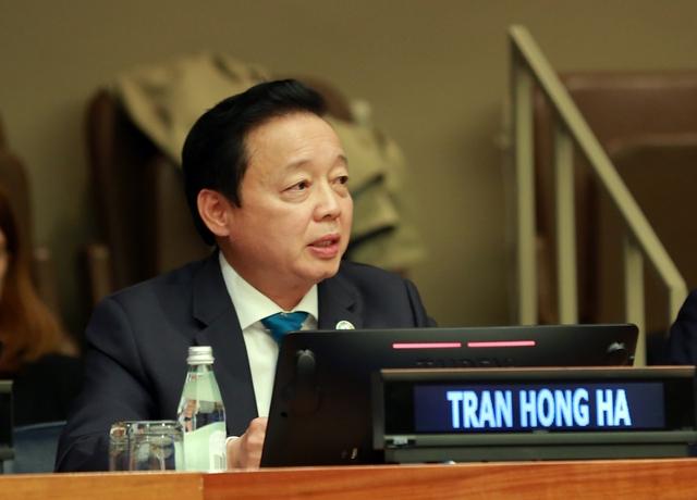 Deputy Prime Minister Tran Hong Ha addresses the United Nations interactive dialogue on water cooperation in New York, the U.S., March 23, 2023. Photo: VGP